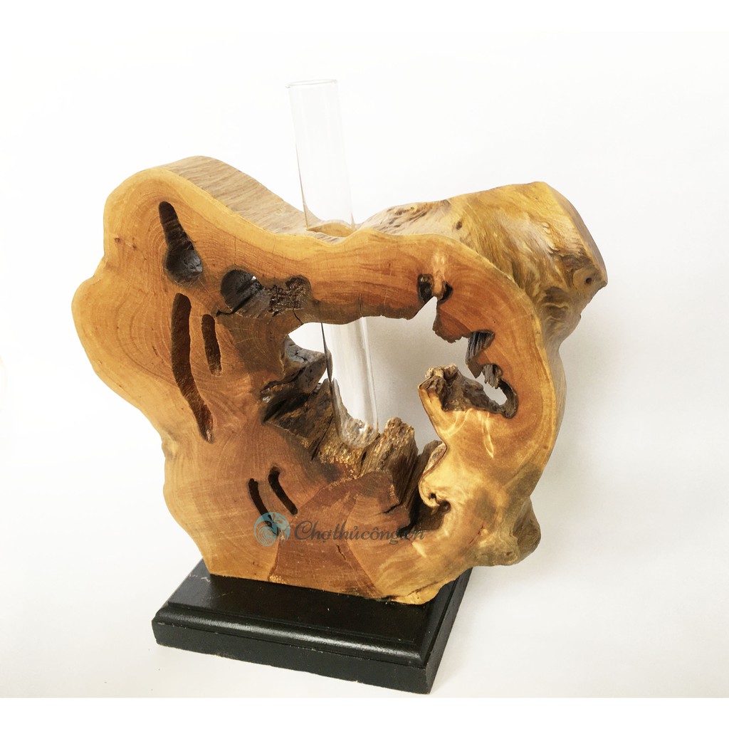Nhà cửa & Đời sống > Trang trí nhà cửa > Bình trang trí || Lọ hoa gỗ lũa tự nhiên có lọ thủy tinh và đế, hình dáng độc đáo dùng làm bình hoa, treo đèn, trang trí sang trọngCòn hàng