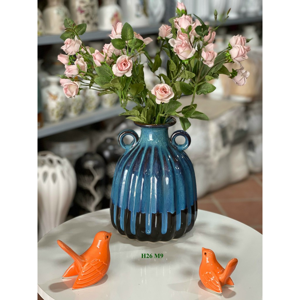 Lọ hoa gốm Bát Tràng mẫu bí cao 26cm miệng 9cm HTT