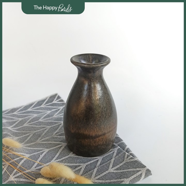 Lọ hoa gốm Bát Tràng phong cách tối giản - Bình hoa gốm men nâu trầm kích thước vừa