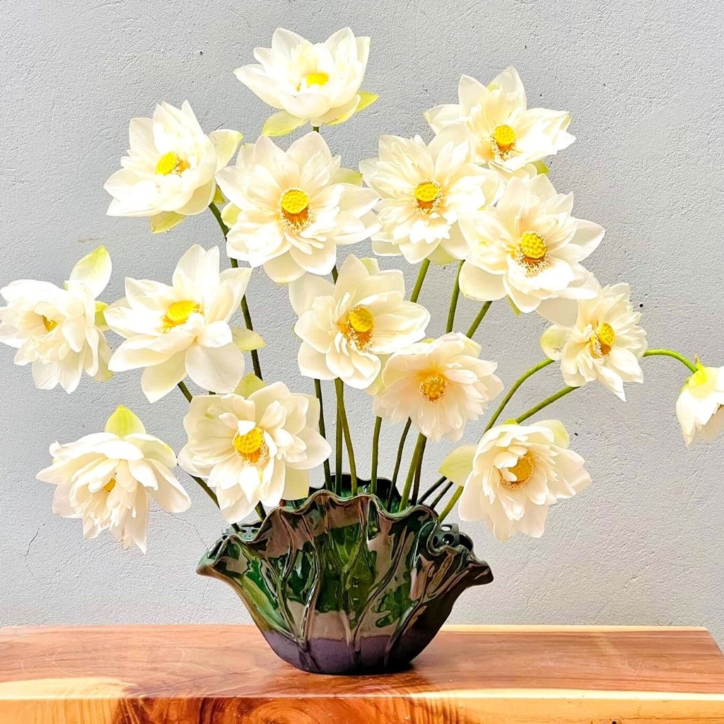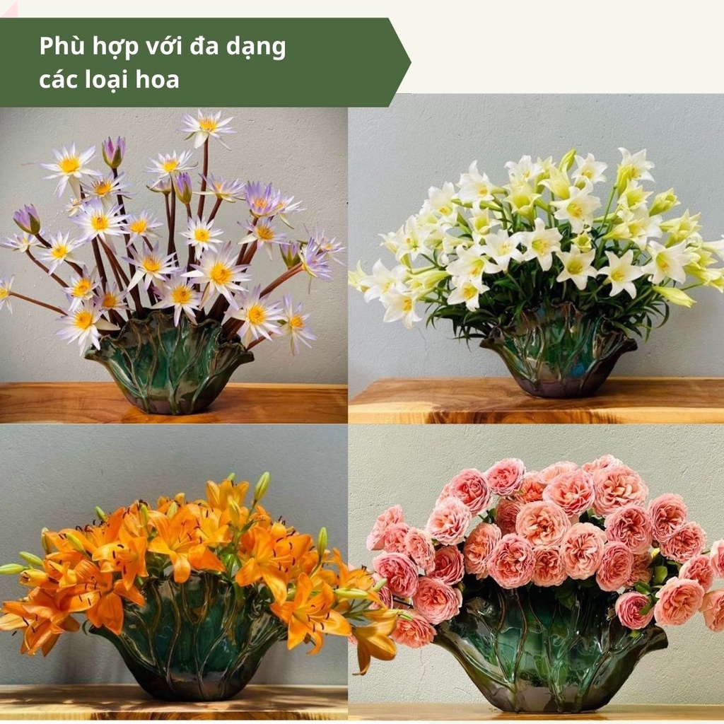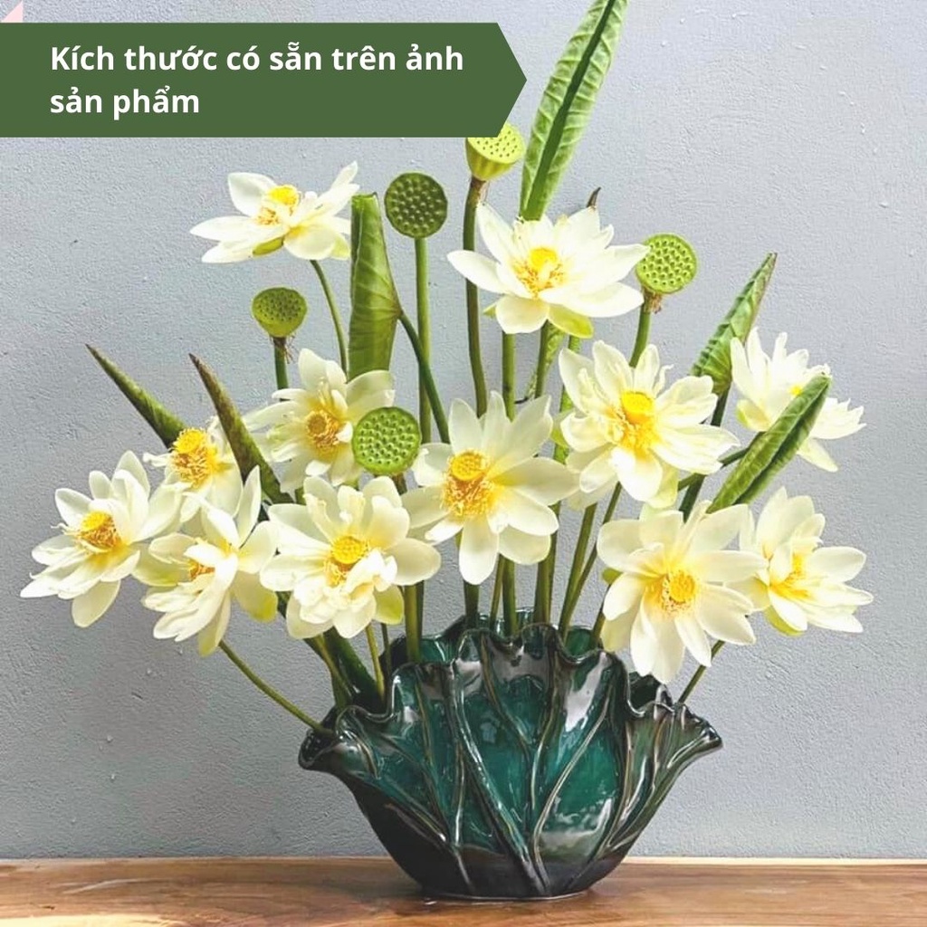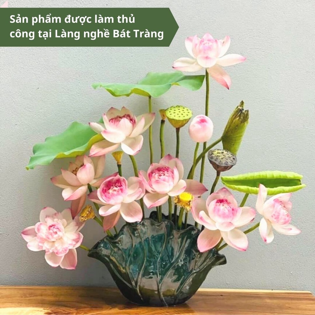 Lọ hoa gốm sứ Bát Tràng - Bình lá sen - Lọ cắm sen, cắm hoa - Bình hoa gốm decor cao cấp - Tặng kèm miếng định hình
