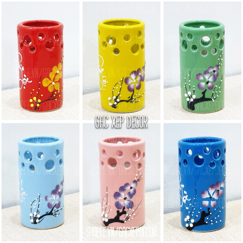 Lọ hoa gốm sứ Bát Tràng kiêm ống đựng bút cao 11cm* Chất liệu: Sứ cao cấp Bát Tràng, tráng men trong ngoài
