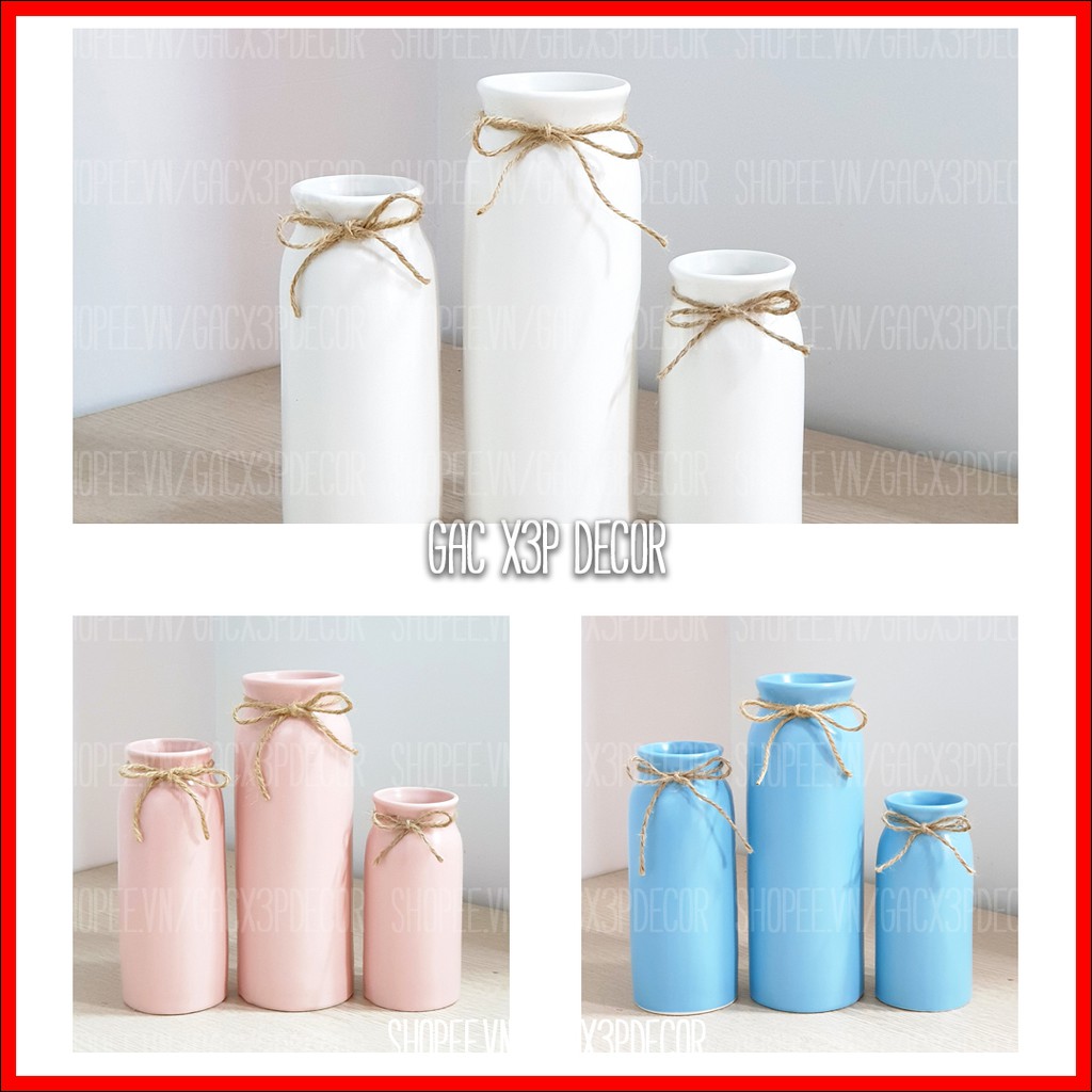 Nhà cửa & Đời sống > Trang trí nhà cửa > Bình trang trí || Lọ hoa gốm sứ - Bộ ba bình màu pastel dáng ốngCòn hàng