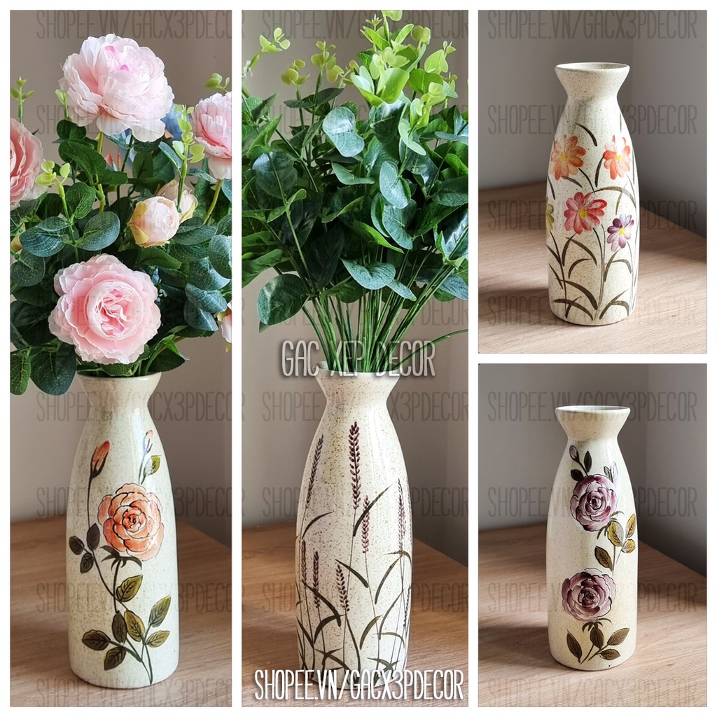 Nhà cửa & Đời sống > Trang trí nhà cửa > Bình trang trí || Lọ hoa gốm sứ dáng sake men cổ vẽ họa tiếtCòn hàng
