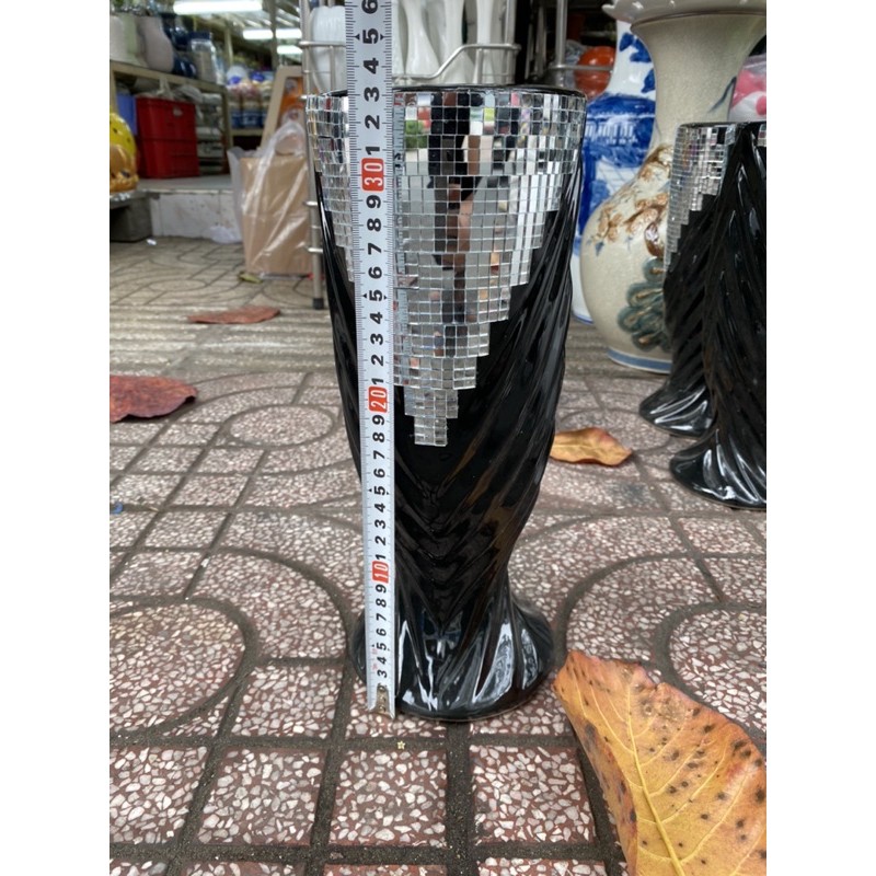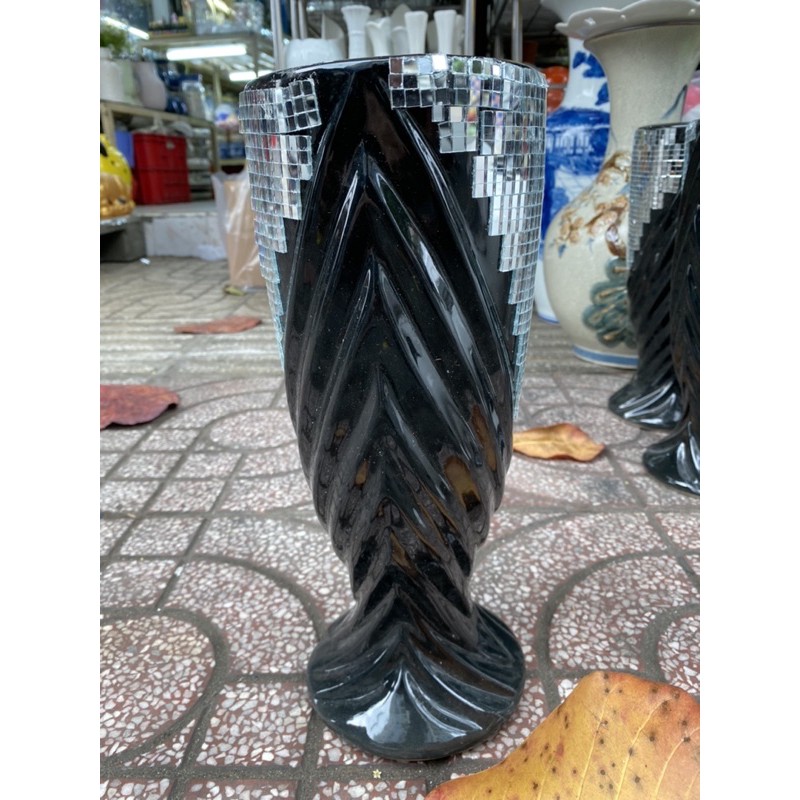 lọ hoa gốm sứ đính thủy tinh màu đen bát tràng