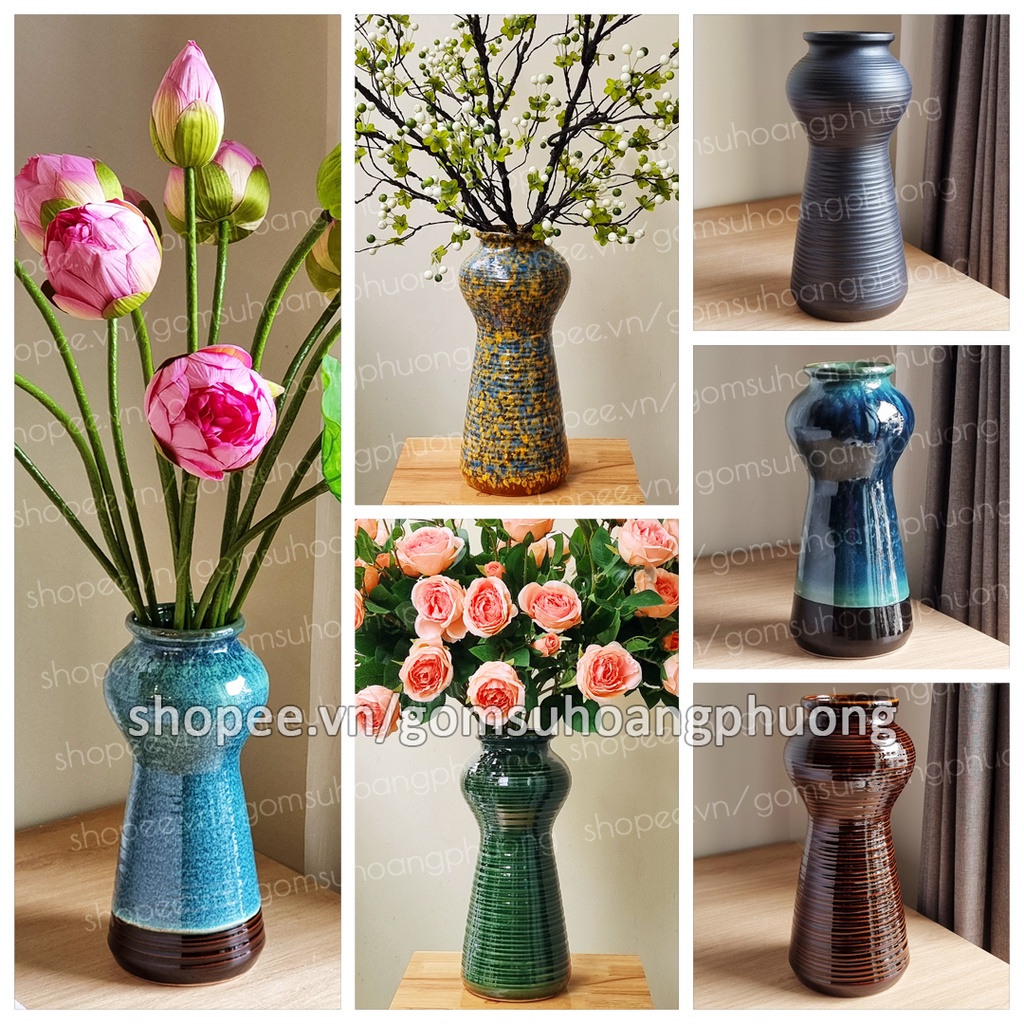Lọ hoa gốm sứ men hỏa biến dáng áo dài Bát Tràng (KHÔNG KÈM HOA)* Mô tả sản phẩm: Sứ Bát Tràng, men hỏa biến, tráng men trong ngoài. Dòng men hỏa biến sẽ có sự thay đổi về sắc độ theo nhiệt độ đun nên mỗi sản phẩm làm ra sẽ có sự chênh lệch về độ sáng/tối và đường vân trên lọ. Do đó mỗi sản phẩm làm ra sẽ là độc nhất vô nhị. Đồng thời dưới ánh sáng khác nhau sản phẩm cũng sẽ có sự khác biệt về màu sắc ạ. Quý khách vui lòng chú ý giúp shop ạ.