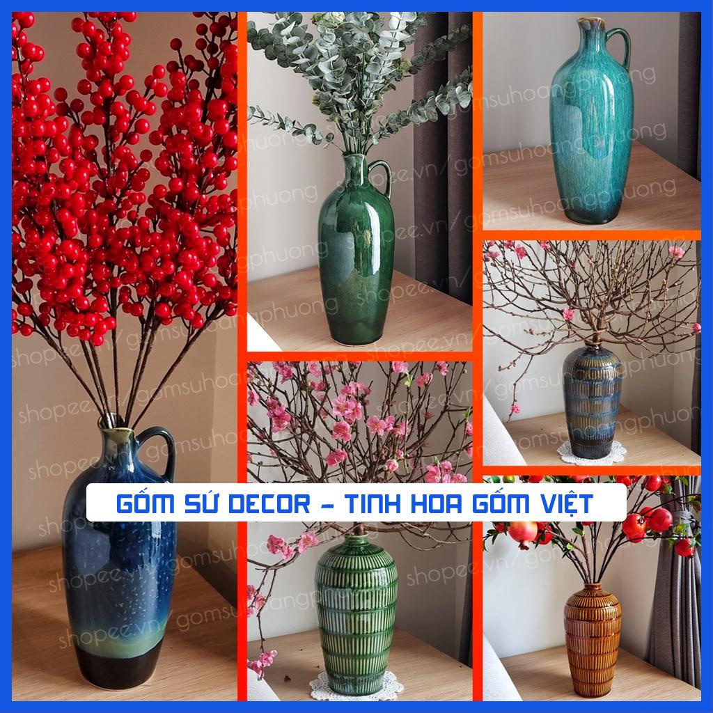 Bình hoa gốm sứ cao 33-36cm thích hợp cắm cành lựu, đào, thông, tuyết mai, cỏ lau, lông công,...