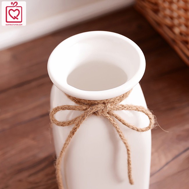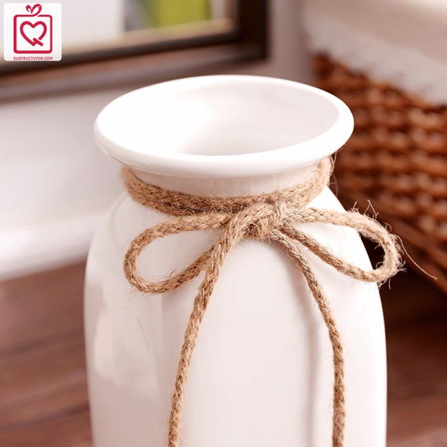 Lọ hoa gốm sứ trắng nơ dây gai phong cách zakka