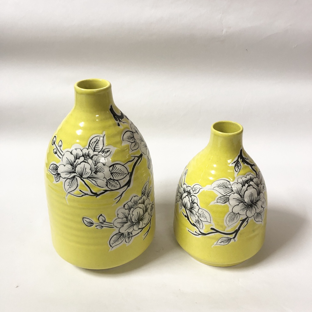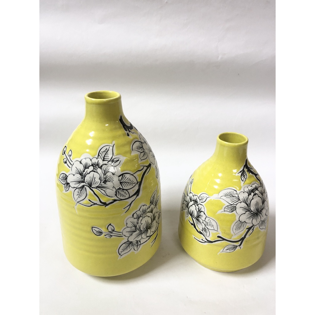 Lọ hoa gốm sứ vàng hoa to cổ nhỏ bát tràng freeship