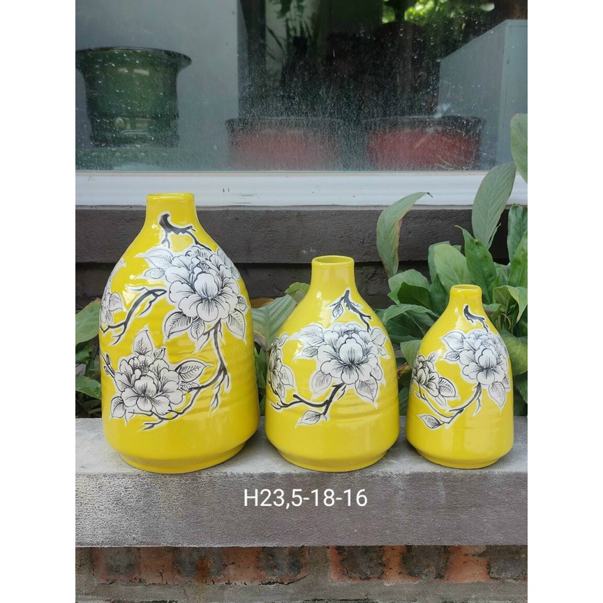Tên sản phẩm: Lọ hoa gốm sứ vàng hoa to cổ nhỏ bát tràng freeshipChất liệu: gốm sứ