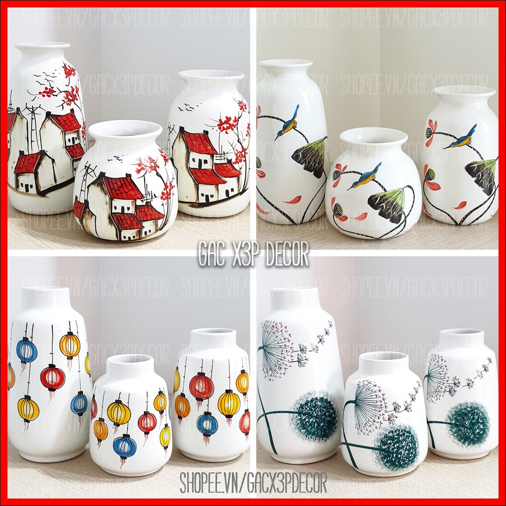 Nhà cửa & Đời sống > Trang trí nhà cửa > Bình trang trí || Lọ hoa gốm sứ vẽ tay men lạnh - Bát TràngCòn hàng