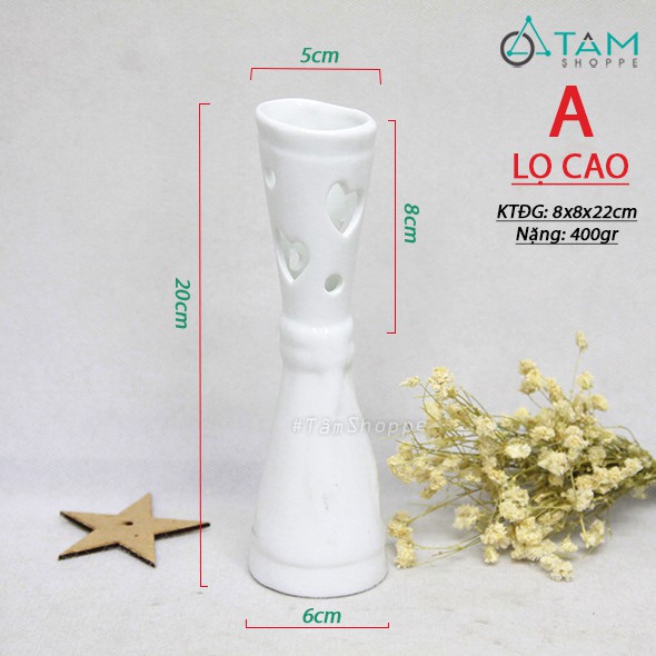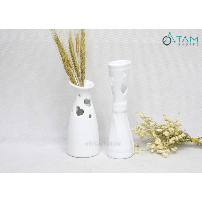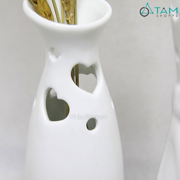 Nhà cửa & Đời sống > Trang trí nhà cửa > Bình trang trí || Lọ hoa gốm trắng để bàn họa tiết trái tim CE-LHOA-57Còn hàng