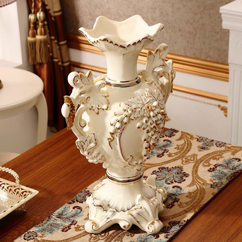 Nhà cửa & Đời sống > Trang trí nhà cửa > Bình trang trí || Lọ Hoa Gốm Trắng Viền Vàng Nhập Khẩu -Bình Cắm Bông -Phong Cách Châu Âu Họa Tiết Trái Nho 3D Nổi Sang Chảnh Độc ĐáoCòn hàng
