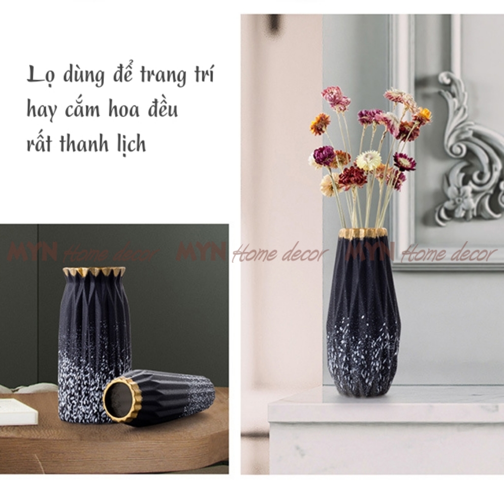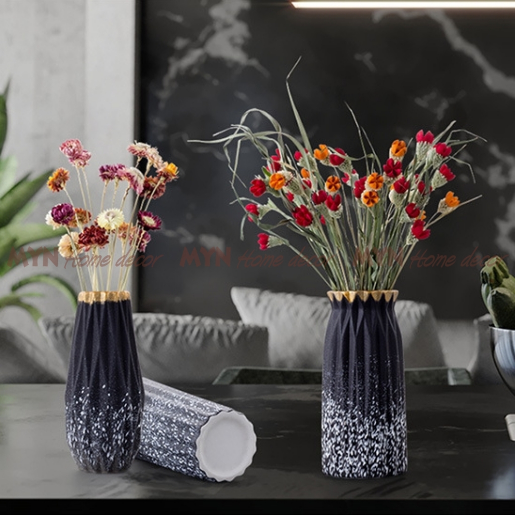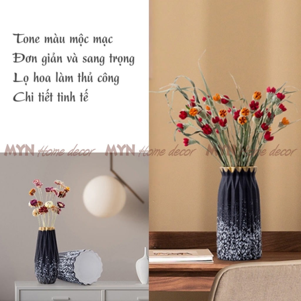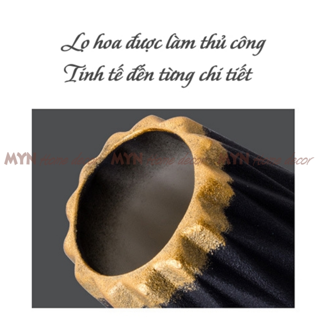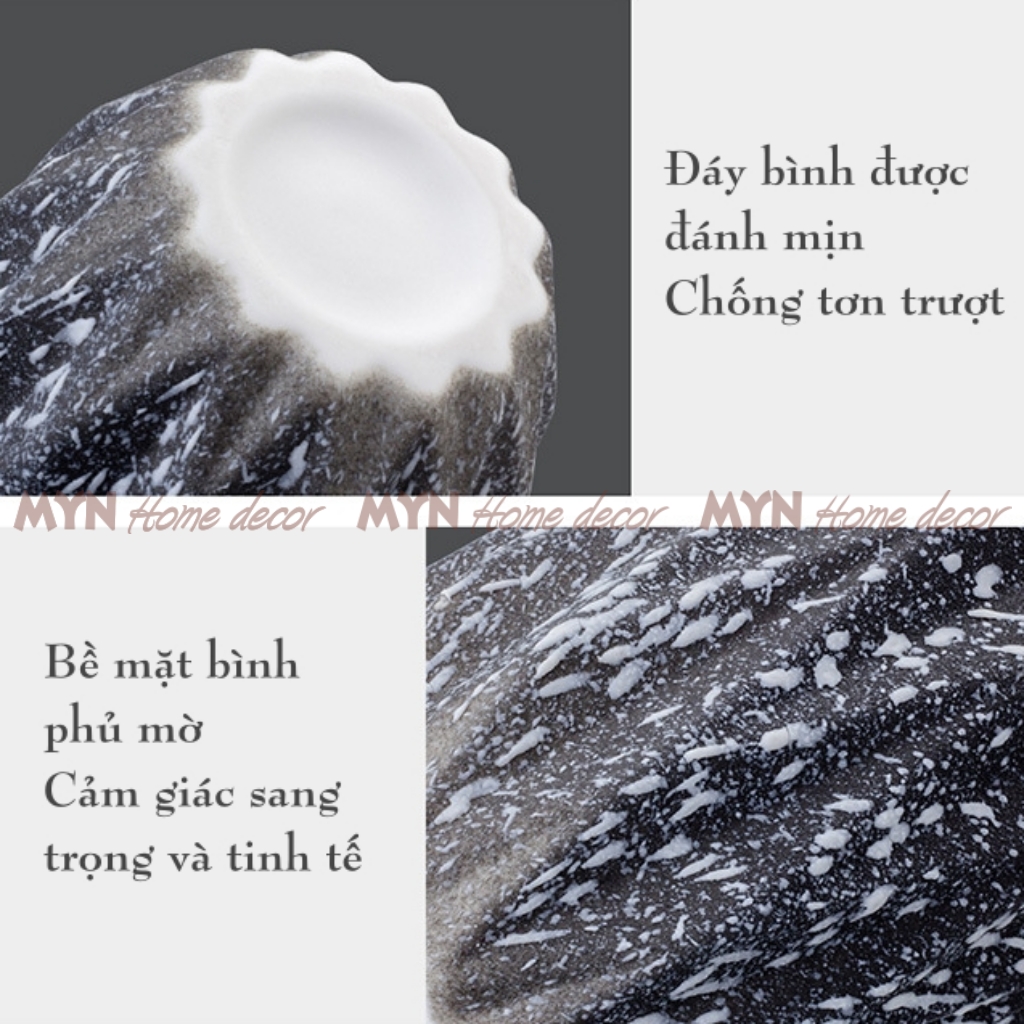 Giới thiệu Lọ hoa gốm vân đá men mờ trang trí nhà đen mạ vàng MYN Home Decor