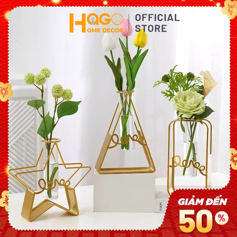 Nhà cửa & Đời sống > Trang trí nhà cửa > Bình trang trí || Lọ hoa hình khối khung thép mạ vàng kèm lọ thủy tinh phong cách Bắc Âu hiện đạiCòn hàng