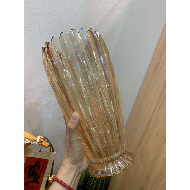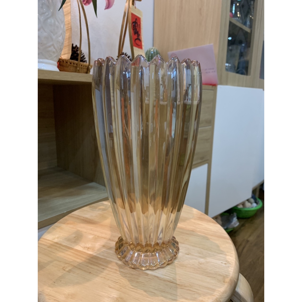 Nhà cửa & Đời sống > Trang trí nhà cửa > Bình trang trí || Lọ hoa khía sọc ánh vàng 28cmCòn hàng