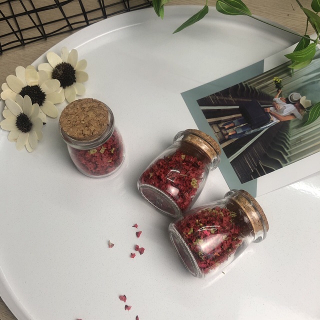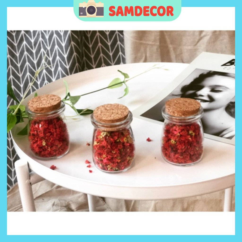 Lọ hoa khô handmade dùng làm phụ kiện chụp ảnh, trang trí hay quà tặng đều phù hợp khách nhé!Hoa khô để trong lọ thuỷ tinh có nắp rất bền và đẹp