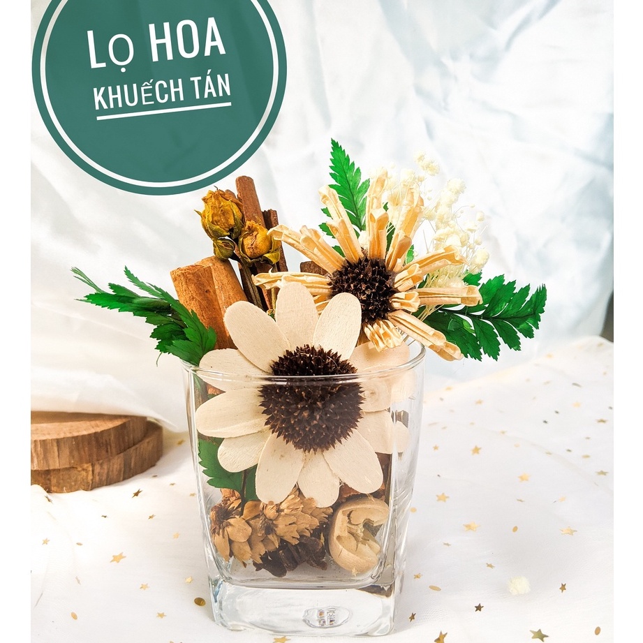 Lọ hoa khô khuếch tán tinh dầu bằng hoa gỗ khô được sử dụng để thay thế cho máy khuếch tán. Không chiếm quá nhiều diện tích và thân thiện với môi trường, bạn chỉ cần nhỏ vài giọt tinh dầu vào lọ và để ở góc bàn làm việc là có thể giữ được hương thơm tinh dầu, cũng như để décor phòng ngủ thêm sinh động.