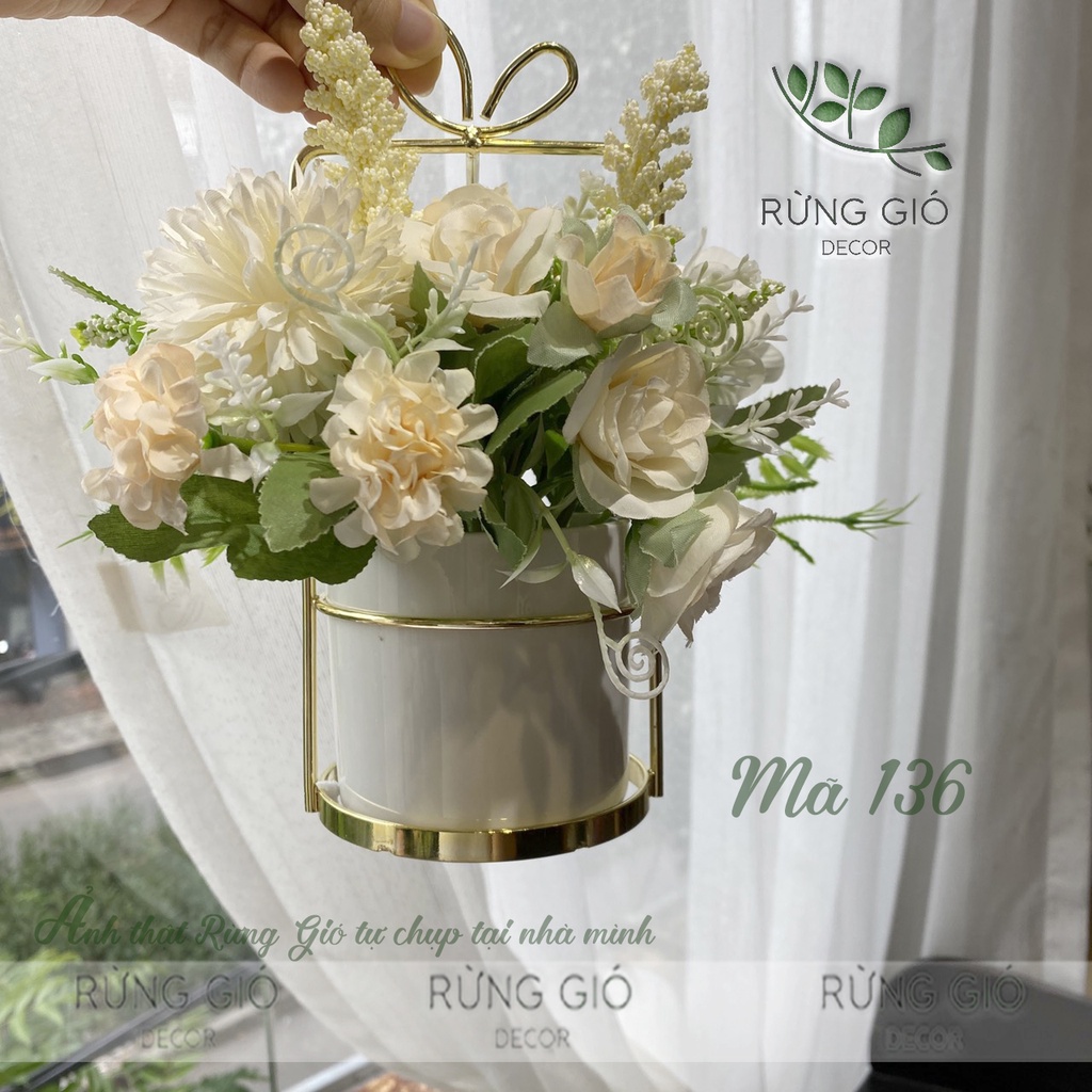 ✔️ Chất liệu: lọ gốm sứ, sx tại Trung Quốc, dày dặn, lọ hoa trắng sứ + viền kim loại xung quanh lọ+ hoa lá kèm theo