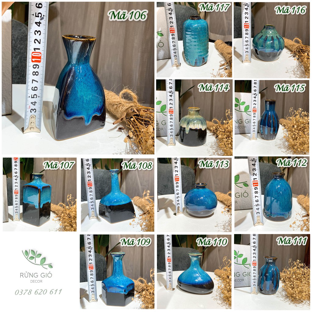 Mã 118 đến mã 129: lọ mini gốm sứ men hỏa biến cao cấp, lọ cao tầm từ 10-15cm/1 lọ tùy mẫu ( shop đăng trên ảnh từng mã); giá 59k/1 lọ