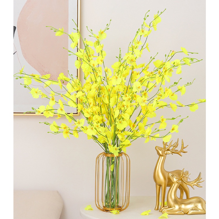 Giới thiệu Lọ hoa lồng chim bằng sắt màu vàng phong cách Bắc Âu dùng để trang trí phòng khách,văn phòng-Trumsicayhoagia
