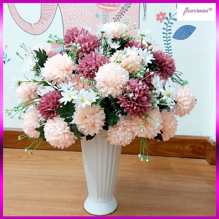 Giới thiệu Lọ hoa lụa cúc vạn thọ cắm sẵn trang trí nội thất phòng khách, quầy lễ tân màu sắc tươi sáng tự nhiên