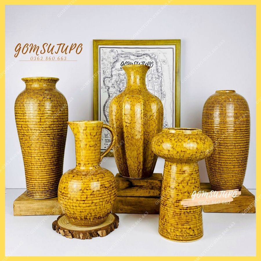 Lọ hoa Men Gấm Vàng Bát Tràng - Gốm Sứ TUPO - Bình Bông Decor - gomsutupo Trang Trí Nhà Cửa