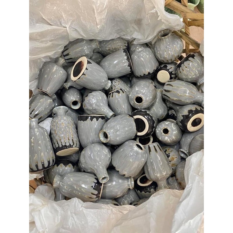 Lọ hoa mini bình sứ trang trí decor men hoả biến