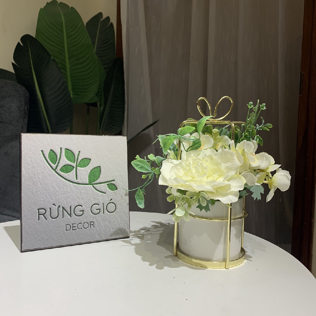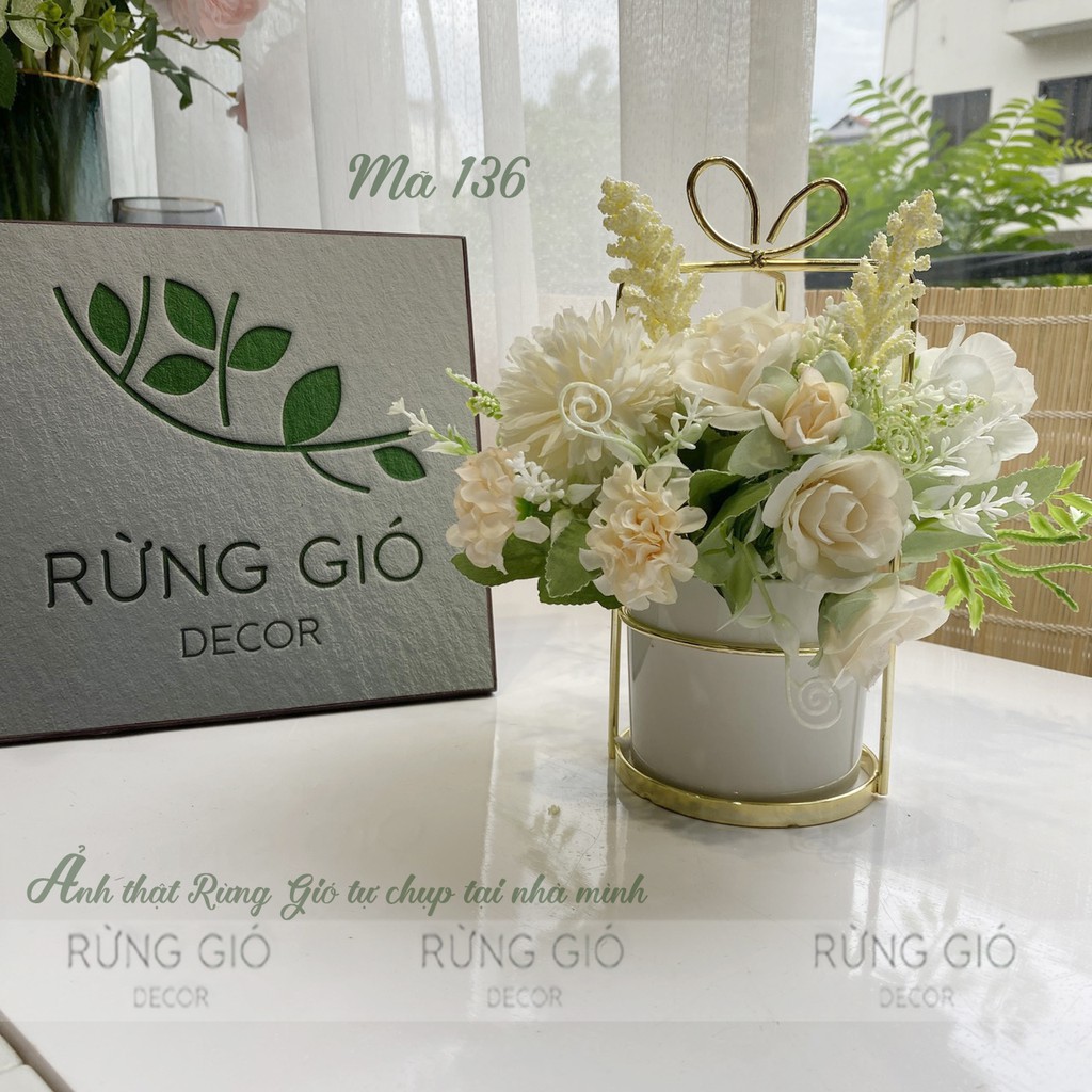 ✔️ Chất liệu: lọ gốm sứ, sx tại Trung Quốc, dày dặn, lọ hoa trắng sứ + viền kim loại xung quanh lọ+ hoa lá kèm theo