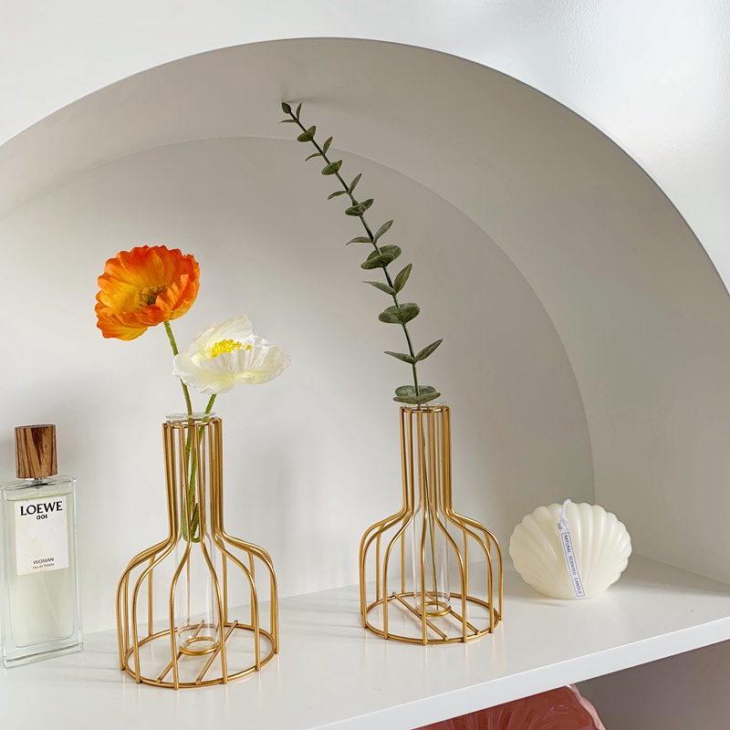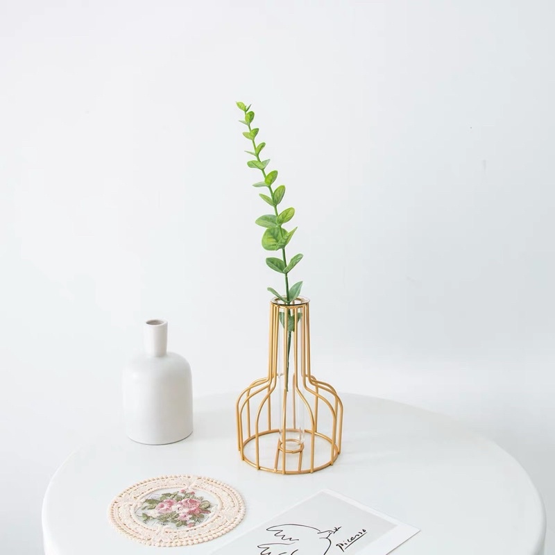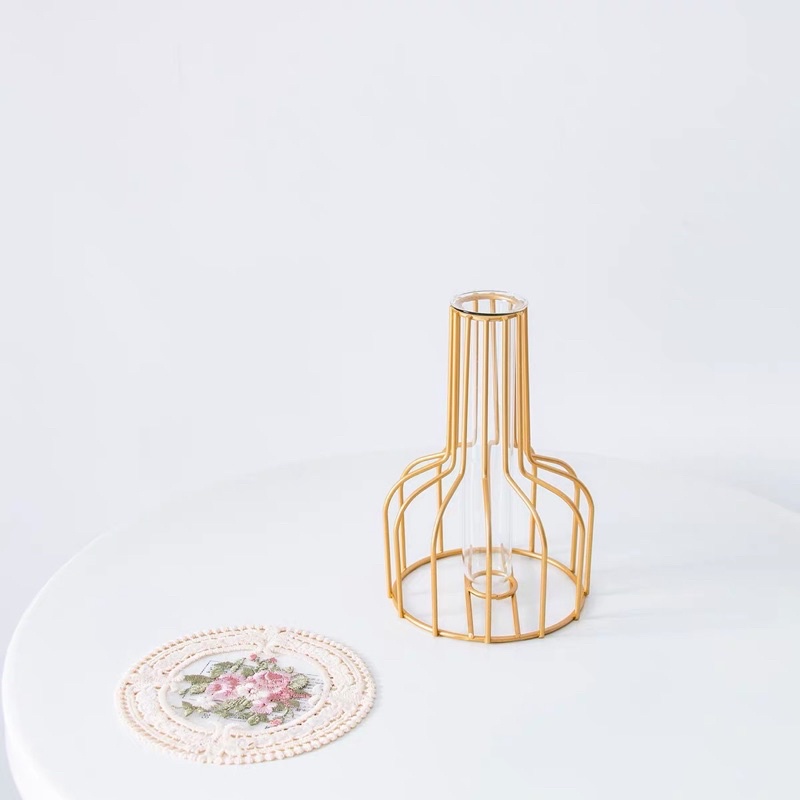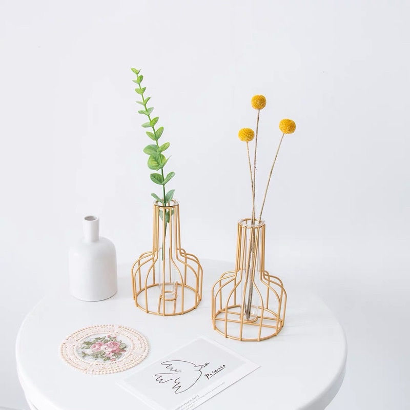✔️Lọ hoa sắt mỹ nghệ màu vàng kim sang trọng nhẹ nhàng, kiểu dáng của lọ cũng rất độc đáo, thường chỉ cắm một hoặc hai bông hoa. Có một ống thủy tinh bên trong, có thể cắm hoa và đổ nước vào trong.