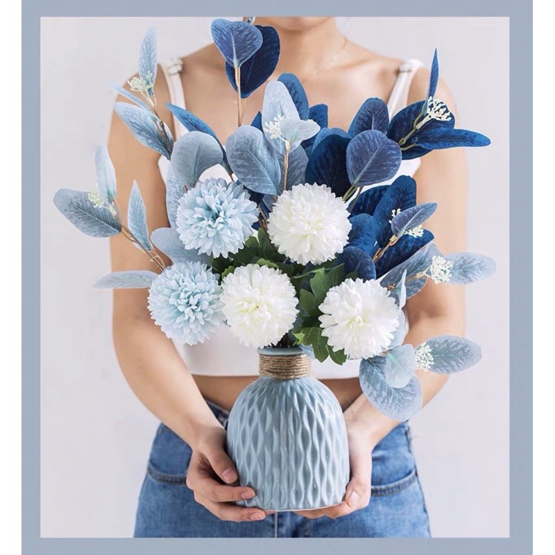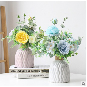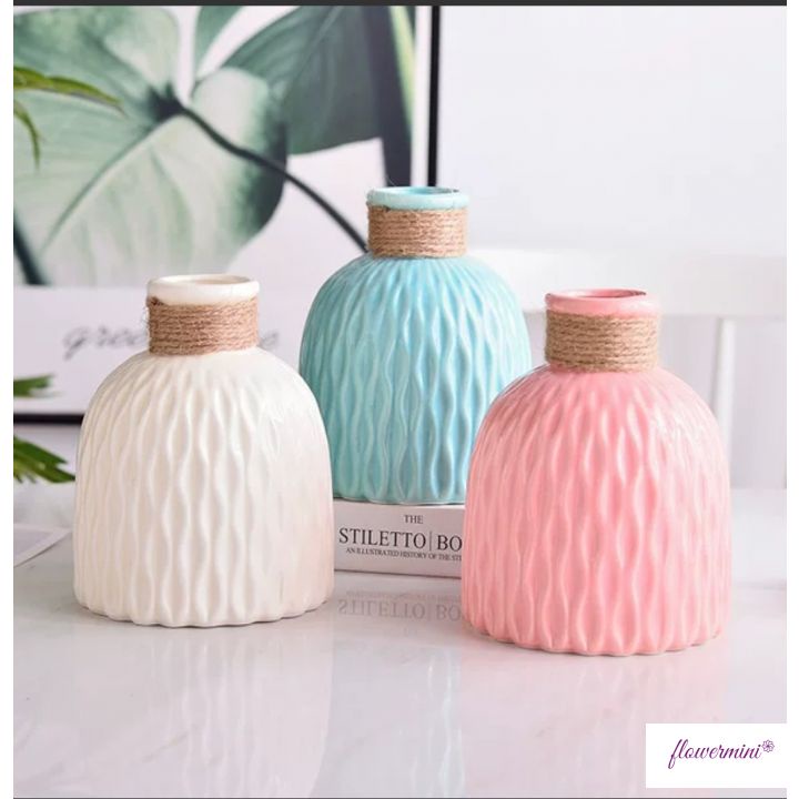 Shop có sẵn các loại hoa lá giả đẹp như mẫu để cắm cùng bạn ấn xem shop để chọn hoa lá nhéLọ hoa nhựa thiết kế với những đường vân sọc độc đáo giả gốm sứ trang trí nhà cửa xinh xắn