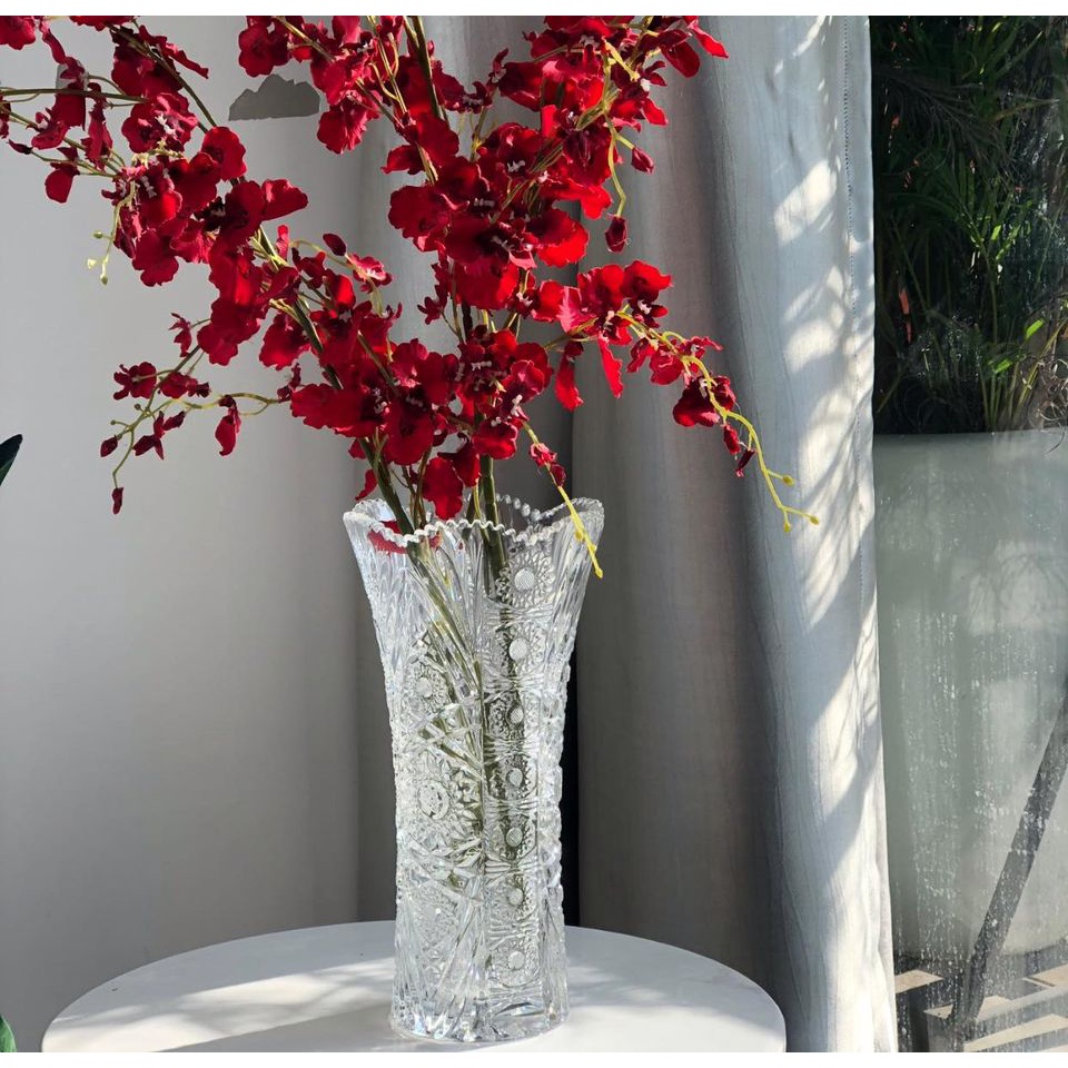Cam kết 💯khách đều ưng vì chất lượng siêu tuyệt hảo: 🌸Lọ hoa pha lê Bohemia cao 28cm được chế tác từ dòng pha lê cao cấp nhất, hoạ tiết khắc tinh xảo nhất của Bohemia🌟Bohemia Sisi hoạ tiết nổi bật bởi thiết kế tinh khiết và tươi sáng của thủy tinh pha lê, kết hợp với họa tiết hoa tạo độ phản quang và điểm nhấn nổi bật tinh tế, sắc sảo