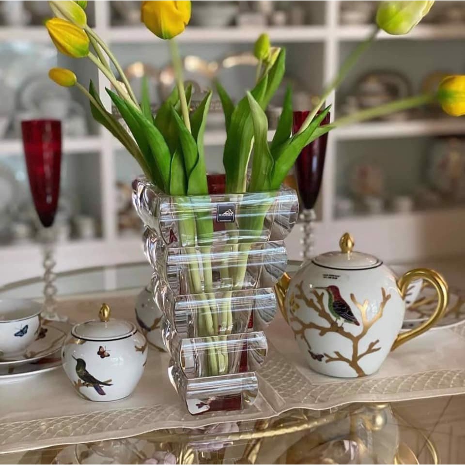 - Lọ hoa pha lê Rogaska được làm từ pha lê trong suốt, thuần khiết, không có vân sọc, không bọt bong bóng, độ chiết quang cao, các họa tiết trang trí mài tỉ mỉ, bền và đẹp, thích hợp dùng để cắm hoa, trang trí cho ngôi nhà thêm màu sắc, phù hợp với nhiều không gian như bàn ăn, bàn bếp, phòng ngủ, phòng khách.