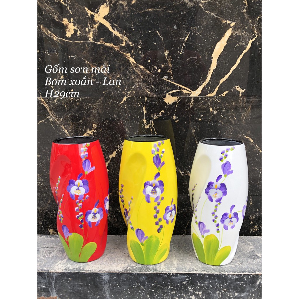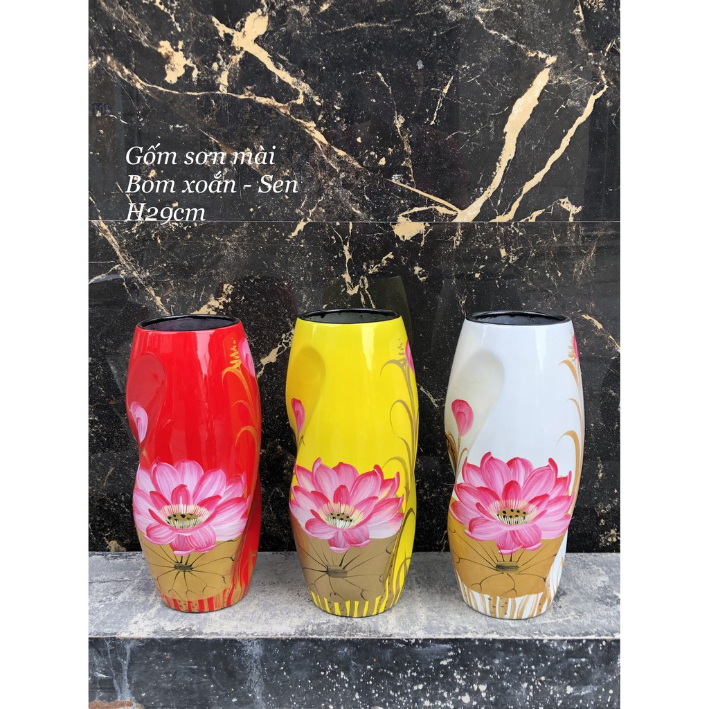 Lọ hoa sơn mài Gốm sứ Bát Tràng dáng xoắn cao 29cm
