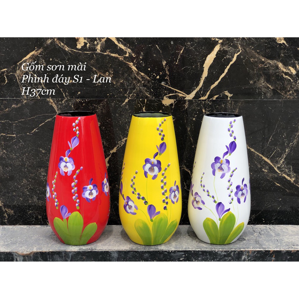 Nhà cửa & Đời sống > Trang trí nhà cửa > Bình trang trí || Lọ hoa sơn mài gốm sứ Bát Tràng dáng phình cao 35cmCòn hàng