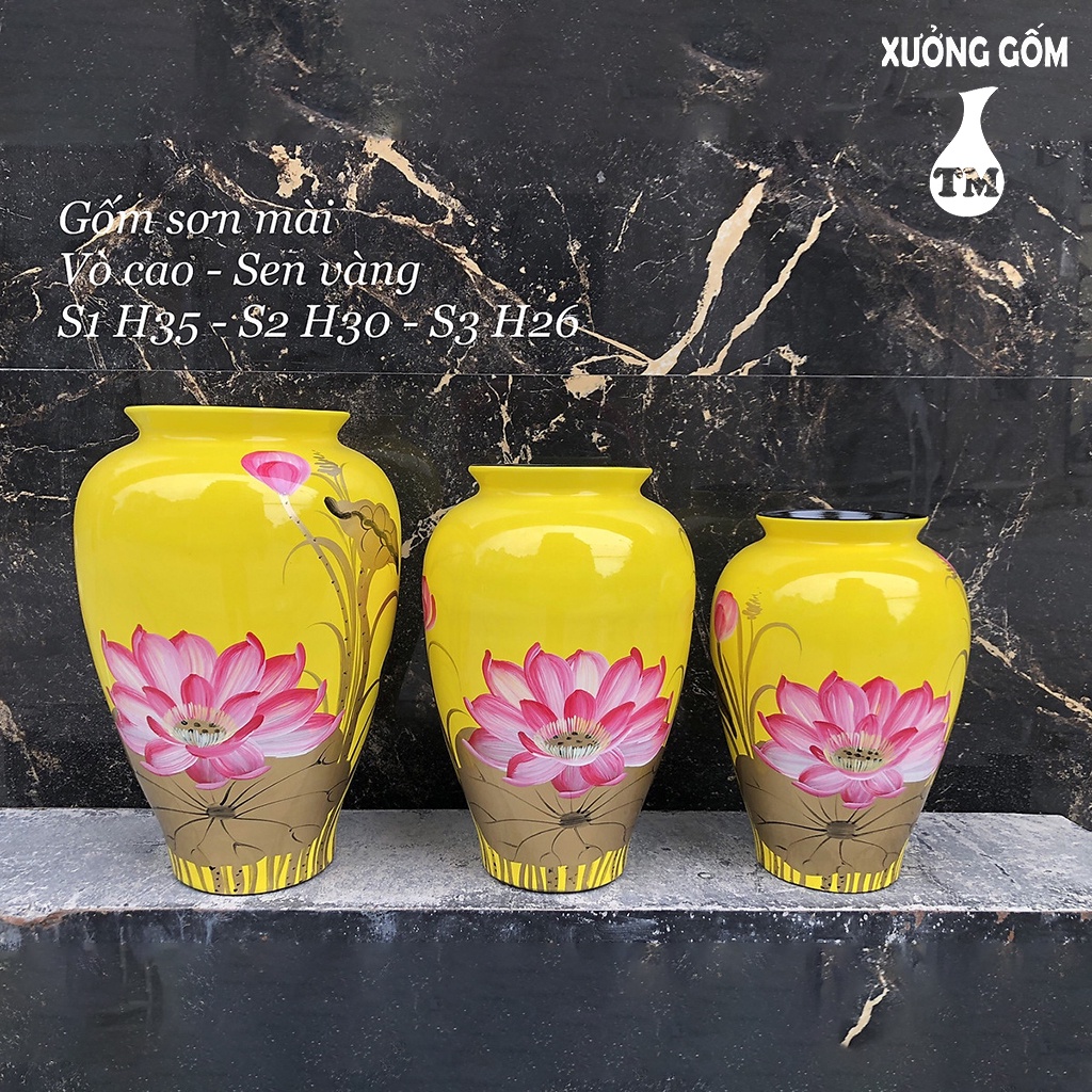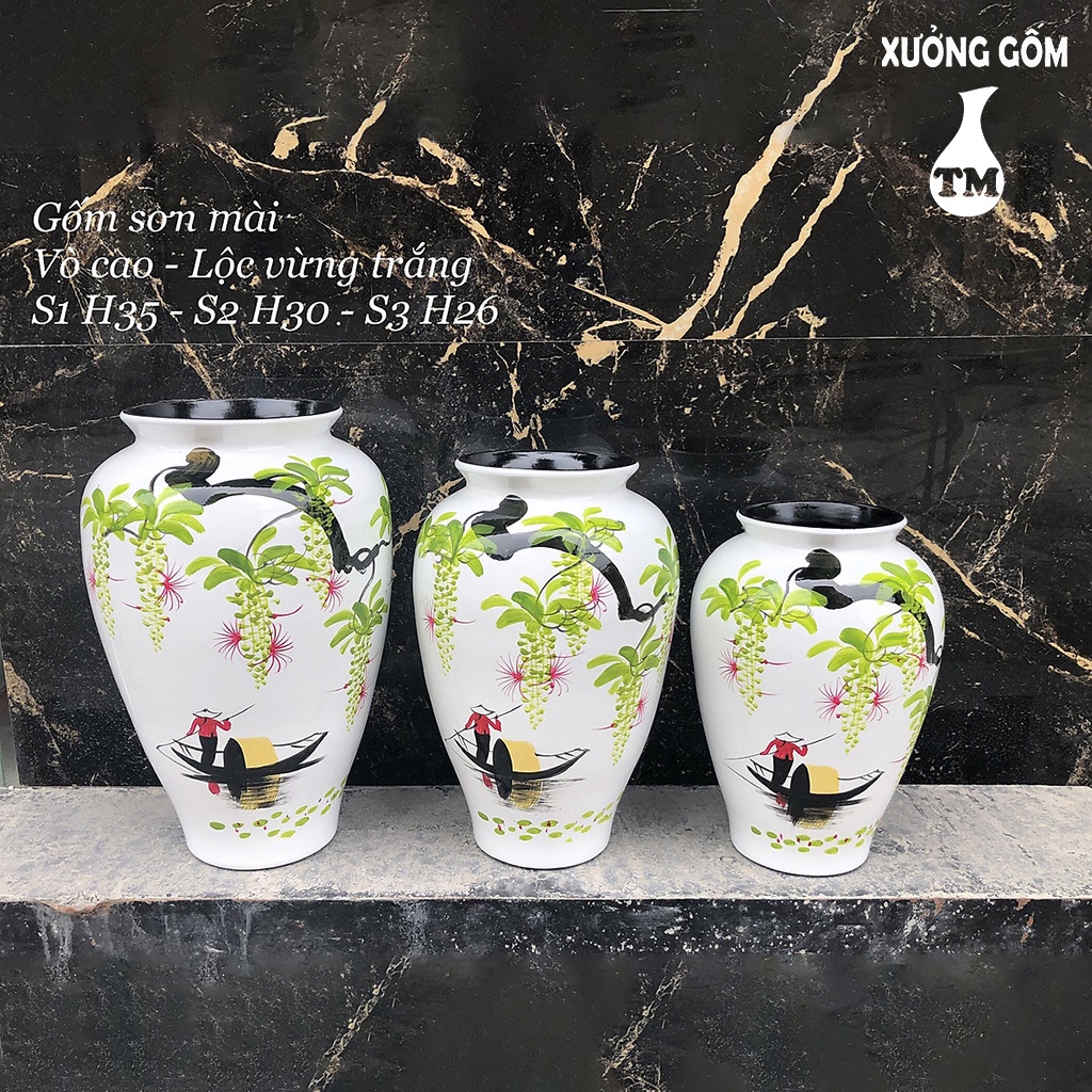 Lọ Hoa Sơn Mài Xưởng Gốm TM Bát Tràng – Bình Cắm Hoa Cao Cấp - Dáng Vò