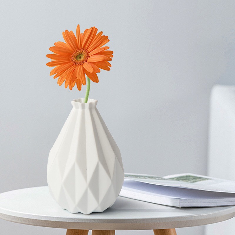 Nhà cửa & Đời sống > Trang trí nhà cửa > Bình trang trí || Lọ hoa sứ 3D trắng kim cương decor để bàn gốm sứ men lạnh bát tràng trang trí phòng cắm hoa giảCòn hàng
