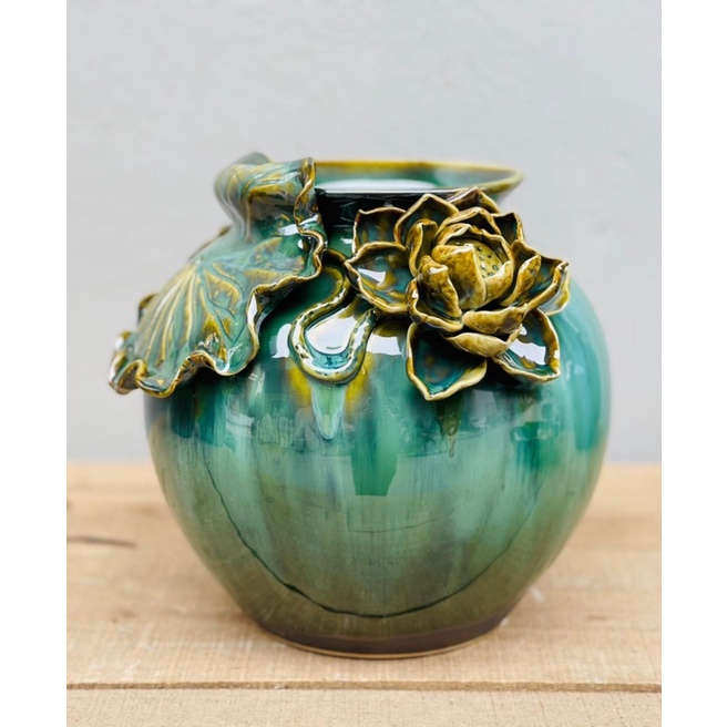 Lọ Hoa Sứ men Hoả Biến Đắp Nổi Hoa Sen Bình Cắm Hoa Sứ Bát Tràng Cao Cấp