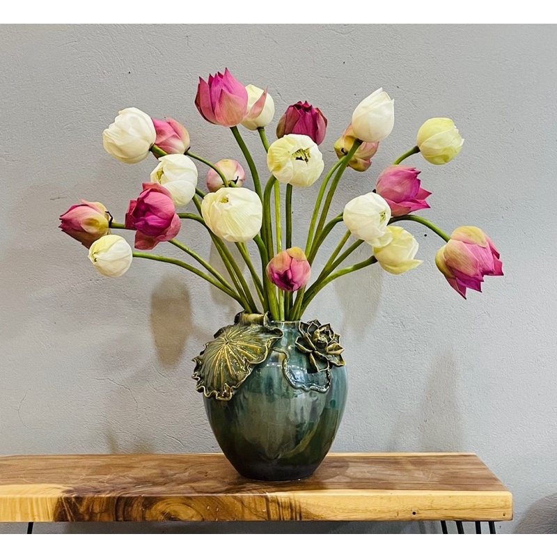 Giới thiệu Lọ Hoa Sứ men Hoả Biến Đắp Nổi Hoa Sen Bình Cắm Hoa Sứ Bát Tràng Cao Cấp