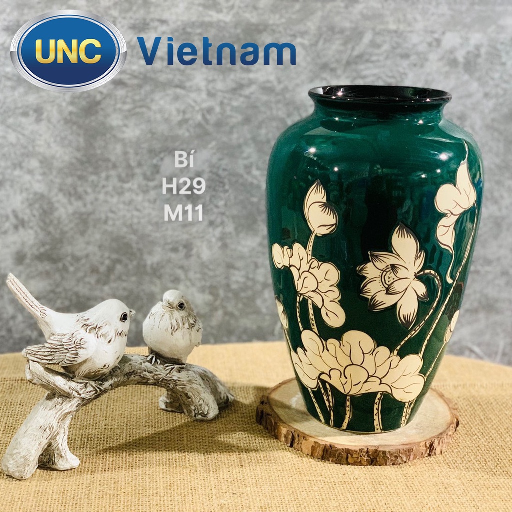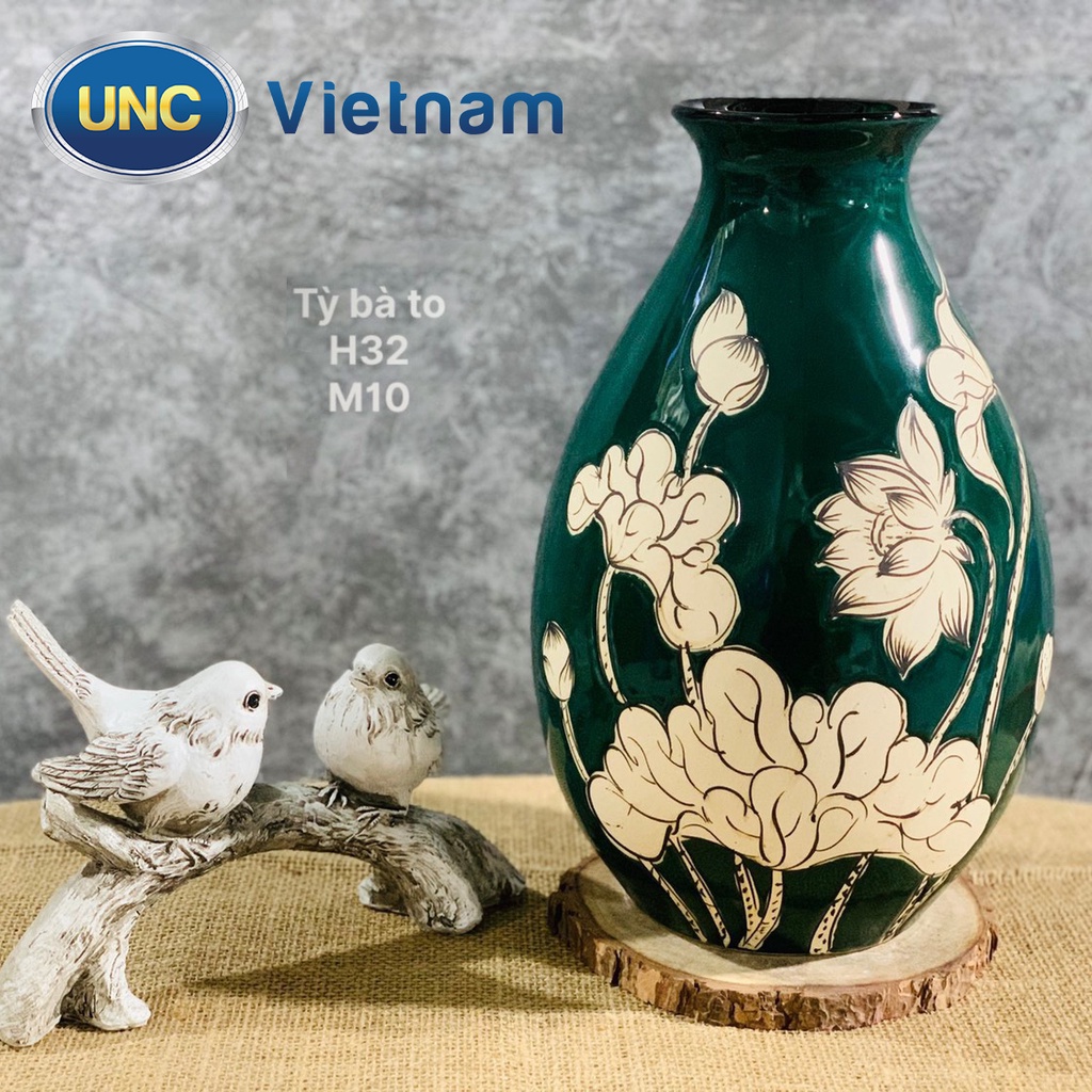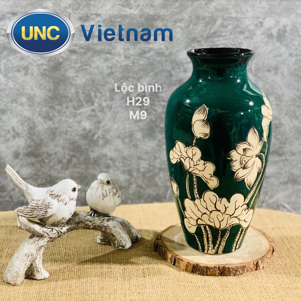 Nhà cửa & Đời sống > Trang trí nhà cửa > Bình trang trí || Lọ Hoa Sứ UNC Việt Nam - Men lục bảo cao cấp, họa tiết hoa sen, kiểu dáng sang trọng phong cách Châu Âu, nhiều sizeCòn hàng