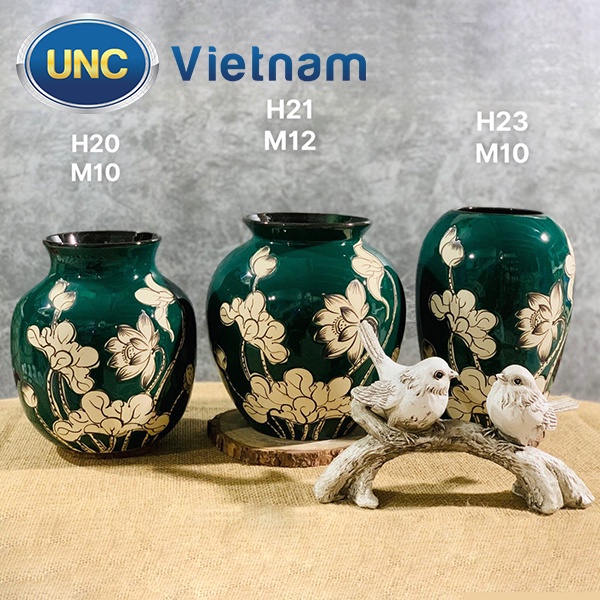 Giới thiệu Lọ Hoa Sứ UNC Việt Nam - Men lục bảo cao cấp, họa tiết hoa sen, kiểu dáng sang trọng phong cách Châu Âu, nhiều size