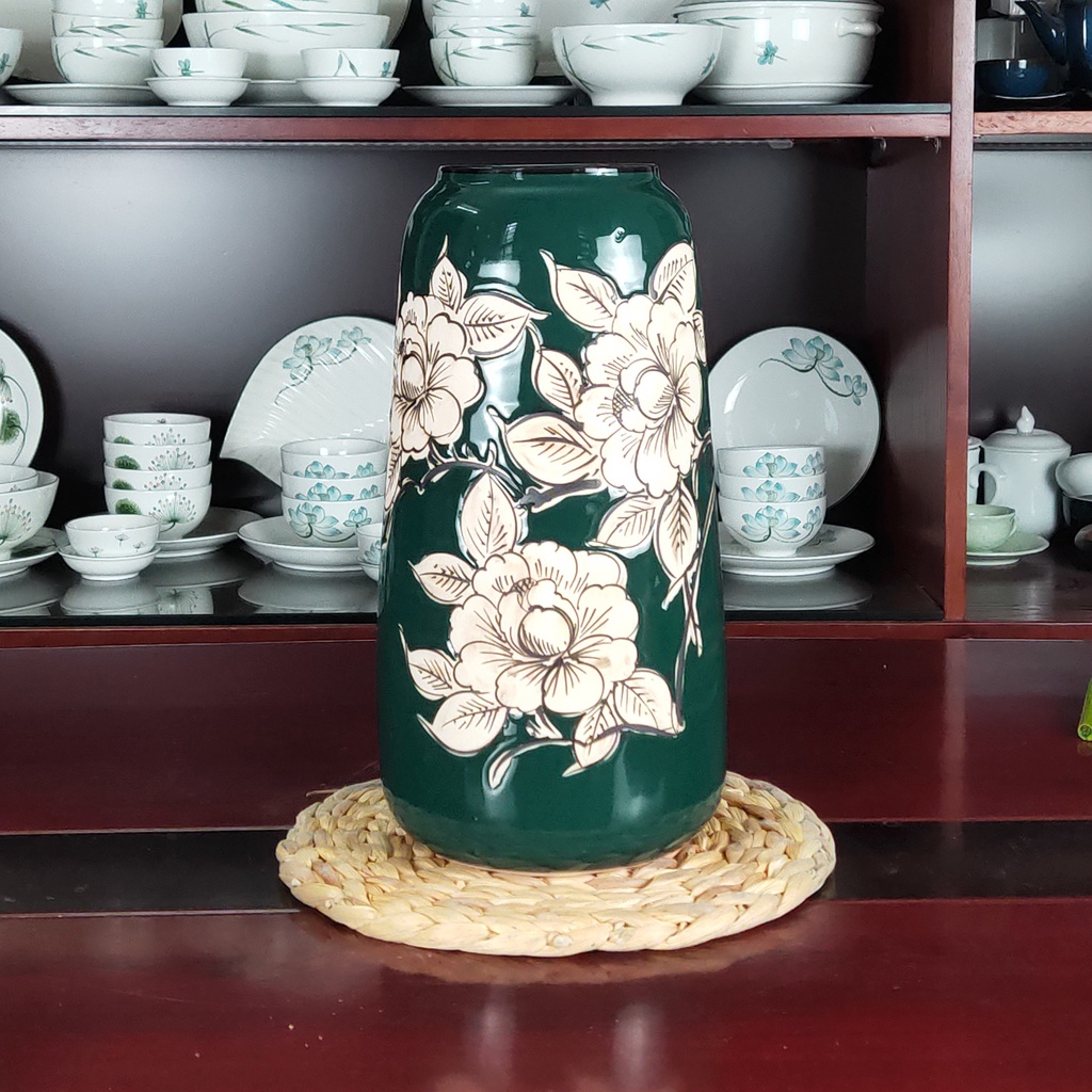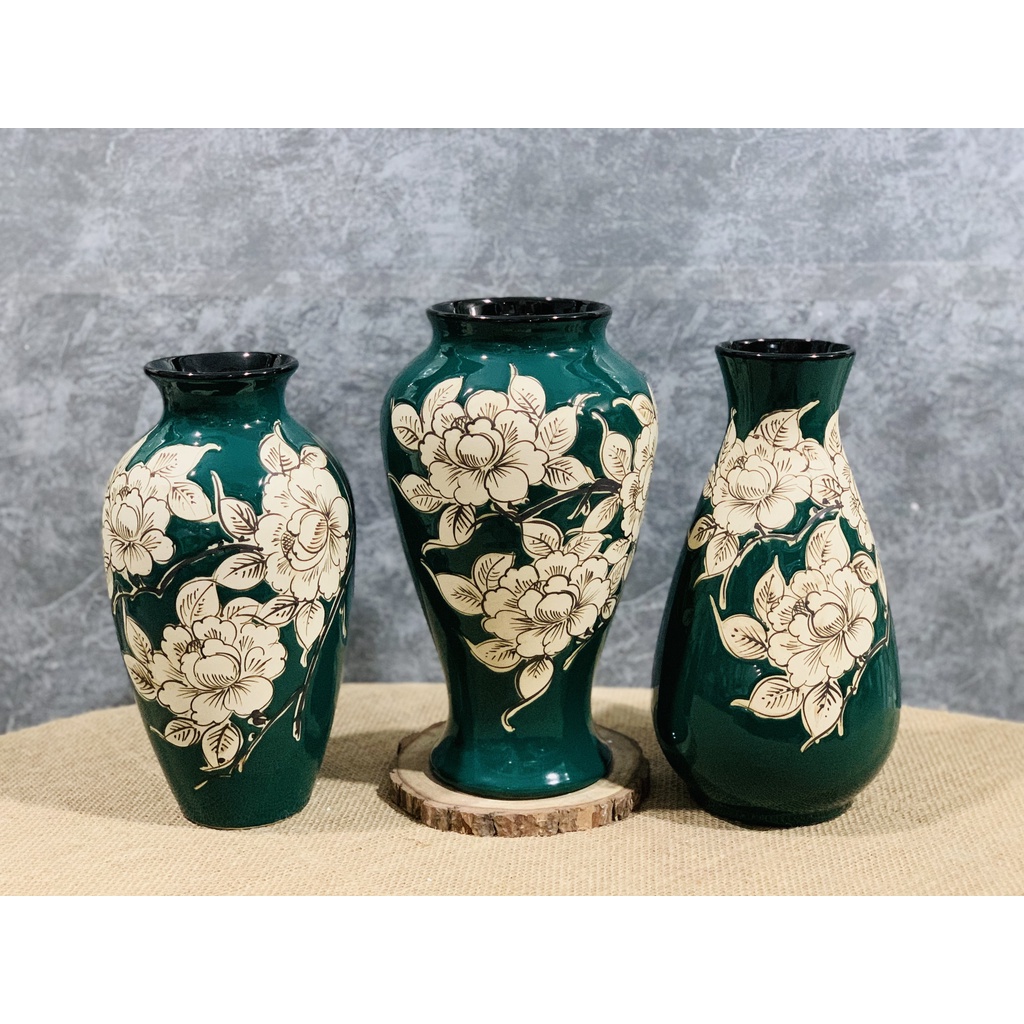 Nhà cửa & Đời sống > Trang trí nhà cửa > Bình trang trí || Lọ Hoa Sứ UNC Việt Nam - Men Lục Bảo cao cấp, họa tiết hoa phù dung kiểu dáng sang trọng, phong cách Châu Âu, nhiều dángCòn hàng