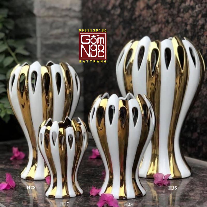 Giới thiệu LỌ HOA TAY PHẬT VẼ VÀNG 24k, BÌNH HOA TRANG TRÍ GỐM SỨ BÁT TRÀNG