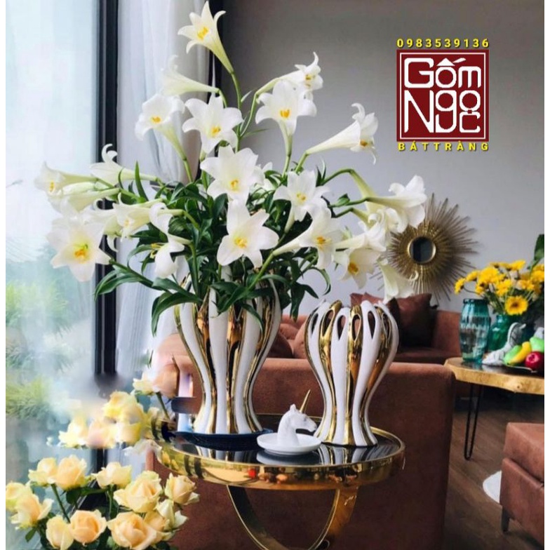Nhà cửa & Đời sống > Trang trí nhà cửa > Bình trang trí || LỌ HOA TAY PHẬT VẼ VÀNG 24k, BÌNH HOA TRANG TRÍ GỐM SỨ BÁT TRÀNGCòn hàng