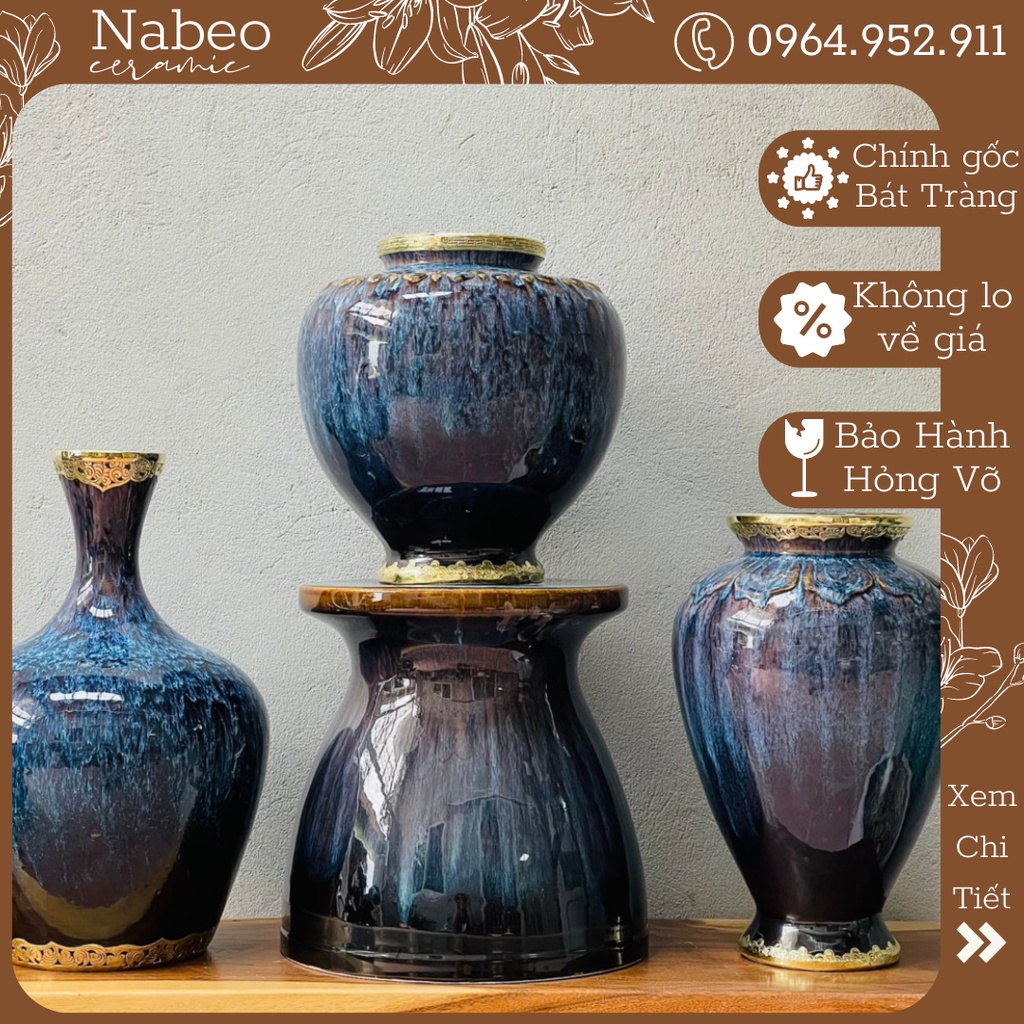 Lọ Hoa, Thạp, Đôn Bọc Đồng Men Hoả Biến Hàng Cao Cấp Gốm Sứ Bát Tràng