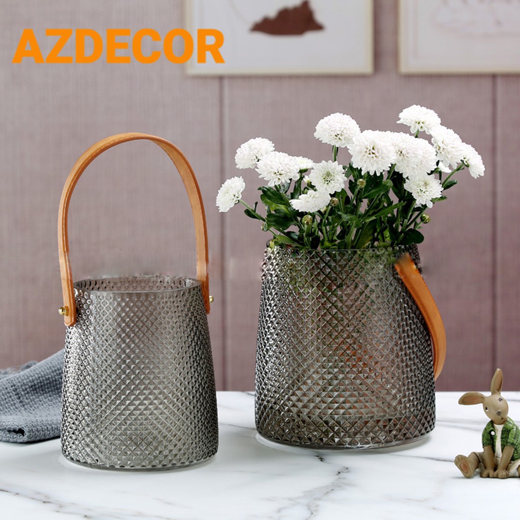 Nhà cửa & Đời sống > Trang trí nhà cửa > Bình trang trí || Lọ Hoa Thủy Tinh Adela Có Quai Xách Bằng Da - Phong Cách Bắc ÂuCòn hàng