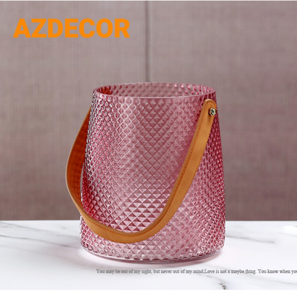 Lọ Hoa Thủy Tinh Bumble Có Quai Xách Bằng Da - Phong Cách Bắc Âu---------------------------------