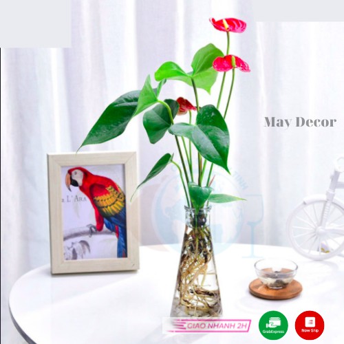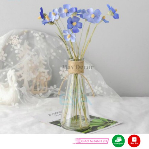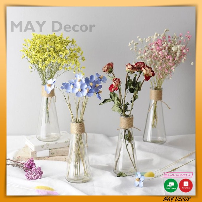 > Lọ hoa thuỷ tinh, bình bông thủy tinh thường được dùng cho các loại cây có chiều cao ngắn, thân không quá to, không phân nhánh nhiều. Ngoài ra, còn có thể dùng để cắm hoa tươi để bàn, hoa Tulip cũng là một lựa chọn. Với hình dáng đơn giản, thì việc trang trí cho bình hoa thủy tinh sẽ khiến cho nó trông hấp dẫn hơn. Bạn có thể thắt thêm nơ vải, đính thêm các loại cây trang trí khác hoặc bạn có thể làm lọ gấp sao, gấp hạc, bỏ điều ước đều được...