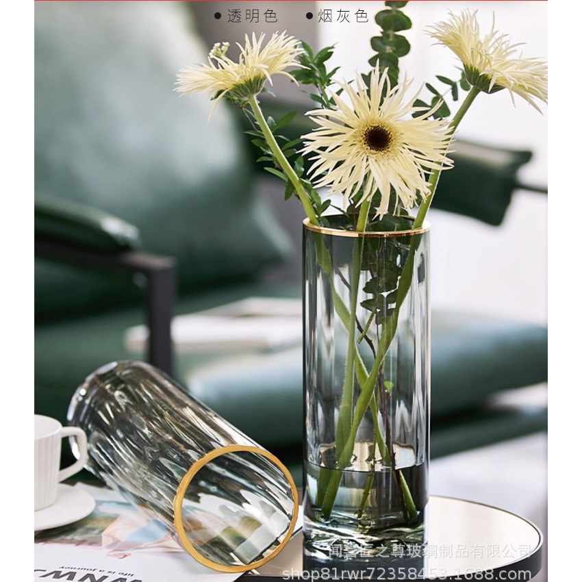 Nhà cửa & Đời sống > Trang trí nhà cửa > Bình trang trí || Lọ hoa thuỷ tinh bình hoa cao cấp trang trí nhà cửa kiểu dáng hình trụ viền miệng vàng - Daisy.decor - Hàng có sẵnCòn hàng