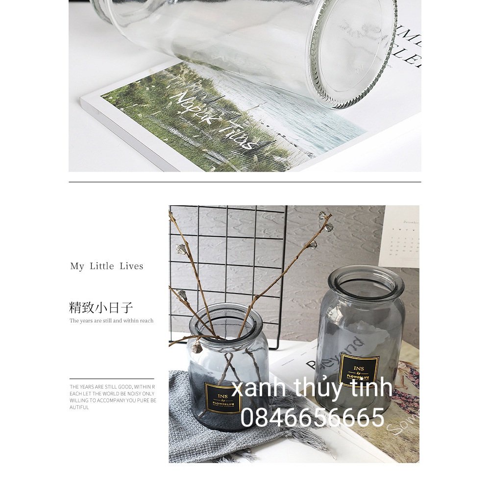 Nhà cửa & Đời sống > Trang trí nhà cửa > Bình trang trí || Lọ hoa thủy tinh cao 18cm dáng trụ đẹp sang trọng, màu khói xámCòn hàng