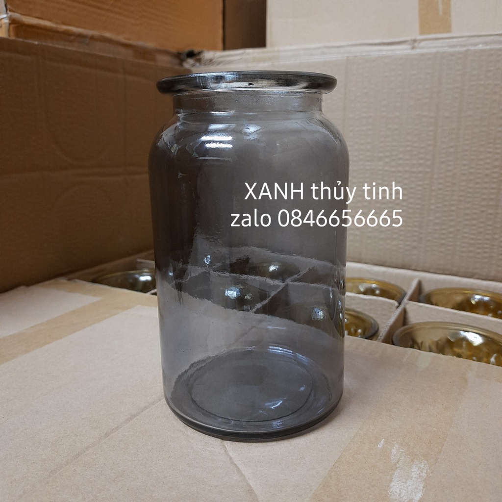 Lọ hoa thủy tinh cao 18cm dáng trụ đẹp sang trọng, màu khói xám